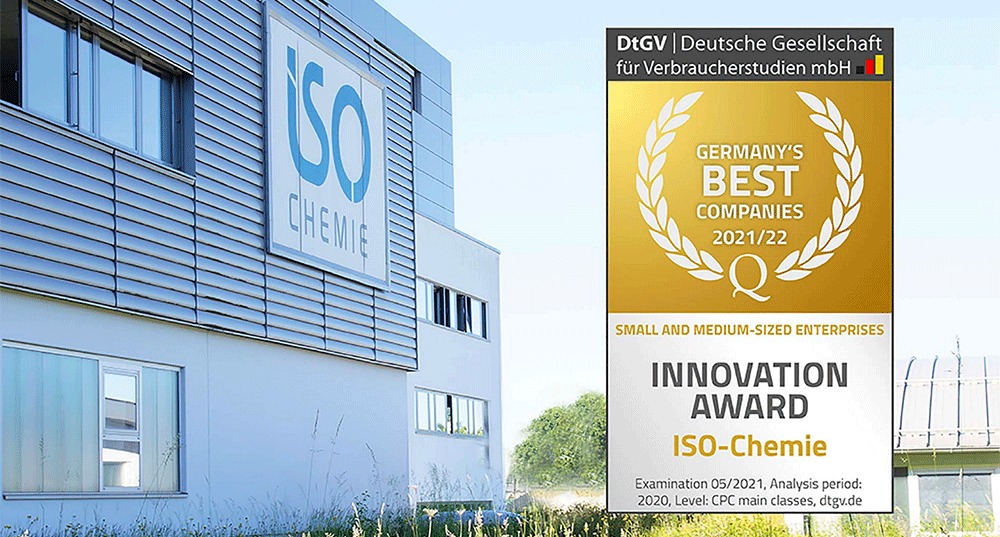 ISO-Chemie GmbH, spécialisée dans les solutions d’étanchéité pour le bâtiment et les mousses techniques en Europe, reçoit le « prix de l’innovation des PME 2021/22 » remis par la Deutsche Gesellschaft für Verbraucherstudien*. Elle fait donc maintenant partie du cercle très restreint des meilleures entreprises allemandes. ISO-CHEMIE est implantée en France depuis 2007.