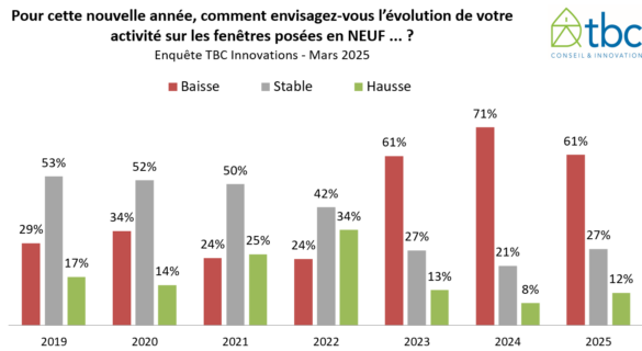 - 61% prévoient une baisse de leur activité sur la pose de fenêtres en neuf en 2025 ;
