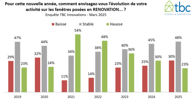 - 23% des professionnels interrogés envisagent une progression de leur activité sur la rénovation de fenêtres en 2025 ;