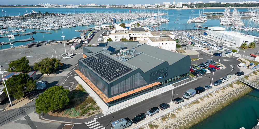 Livré en juillet 2021, le nouveau TRIBORD Sailing de la Rochelle (17) est un lieu destiné à la conception des produits Tribord et à l’organisation d’événements autour de la pratique sportive. Le nouveau site, qui met l’univers nautique à l’honneur, dispose également d’un accès libre aux particuliers passionnés par la mer. Le bâtiment, de 3 000 m² a été équipé de 18 modules de brise-soleil à lames au profil en aile d’avion entre plats destinés à bloquer le rayonnement solaire tout en apportant une signature architecturale au bâtiment.