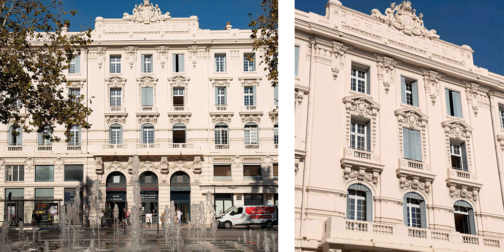 Cet immeuble historique surplombe la mer sur l’une des places emblématiques de la ville. Témoin de plus d’un siècle d’histoire antiboise, ce bâtiment a récemment fait l’objet d’une réhabilitation complète menée par le Groupe CIR (Compagnie Immobilière de Rénovation). Ce spécialiste de la rénovation se donne pour mission de sauvegarder le patrimoine architectural et historique des cœurs de ville, de valoriser des édifices empreints d’histoire et de les inscrire dans une démarche respectueuse de l’environnement. C’est dans cet esprit, que le Grand Hôtel a été transformé en 36 appartements de standing.