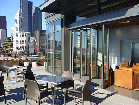 Le système pivotant-coulissant SF35, avec cadre aluminium et vitrage isolant, assure une réduction phonique jusqu’à 30 dB, et répond aux exigences d’étanchéités dans les régions les plus froides. Le SF30, unique système pivotant-coulissant avec la charge au sol, permet lui d’équiper les terrasses d’un système ” tout-verre “.
