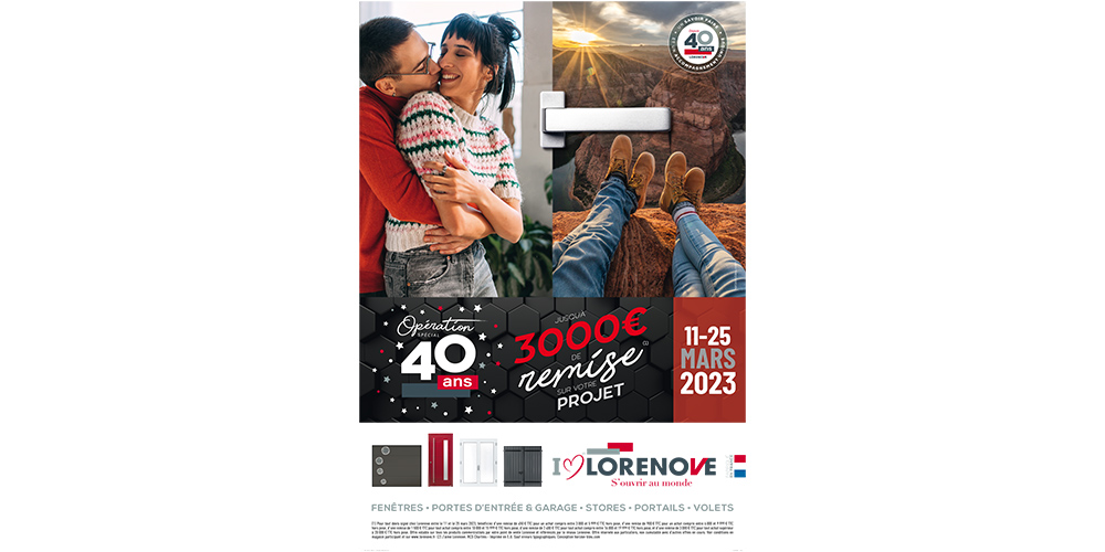 Dès le 11 mars prochain et jusqu’au 25, LORENOVE lance sa campagne anniversaire, pour célébrer, avec ses clients, ses 40 ans. Cette opération spéciale sera relayée à travers l’ensemble des concessions et agences du réseau.