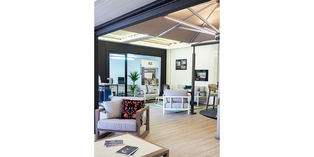Alors que le showroom de Caen dispose aussi de deux espaces de stockage, le nouveau KE Store de Deauville se concentre exclusivement sur la présentation de produits. L’espace particulièrement inspirant met en scène une large sélection de solutions : protection solaire, pergolas, stores bannes… mais également textiles et mobilier outdoor/indoor. Pour ce KE Store deauvillais, Décoritex élargit son offre pour inclure de nouveaux articles tels que des parasols portables, coussins et plaids…