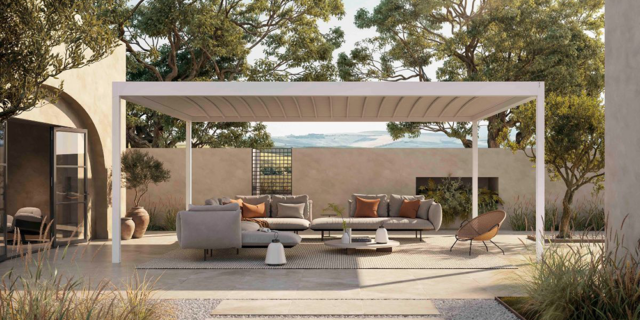 La pergola Versuz Linea reconnue comme la meilleure solution dans la catégorie Sustainable Diest, décembre 2025. Harol a...