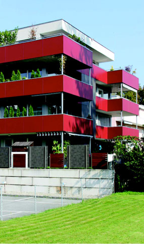 Un esthétisme discret : les fixations sont parfaitement intégrées aux panneaux. En effet, il y a moins de points de fixation sont nécessaires vue la charge admissible pour chaque point. De plus, leurs têtes sont disponibles dans de très brefs délais dans différents coloris.
