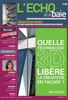 Dossier Spécial Façades : imagination et technique au pouvoir Salon Artibat : Tous les savoir-faire du bâtiment, en octobre à Rennes Panorama ITE, solutions menuiseries adaptées L'homme du mois Nicolas Riou, Glass Connection Rencontre Came, de la maison intelligente à la ville intelligente Zoom Schüco, des innovations pertinentes Pleins feux Pour Bieber Bois, le passif est l'avenir de la construction