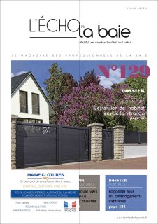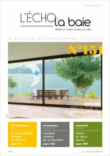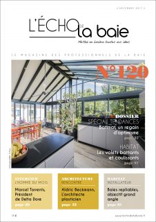 Dossier Spécial Véranda Véranda à la carte Dossier Portail Un objet déco à part entière Panorama Volets roulants Zoom ALISÉAL hisse haut les panneaux L’homme du mois Stéphane Jacquet Parole d’architecte Kengo Kuma : « particuliser » la lumière Zoom Swisspacer, au cœur de l’innovation