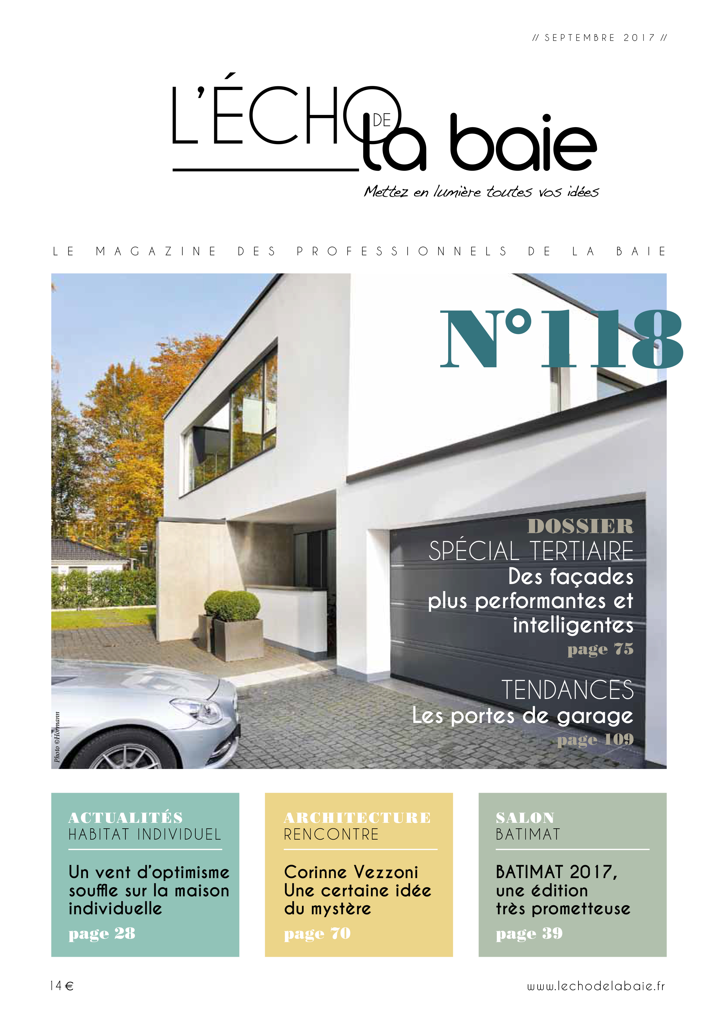 L’homme du mois Patrick Dupin Installateurs 10 points à vérifier Parole d'architecte Corinne Vezzoni, « Une certaine idée du mystère » Dossier spécial Façades Toujours plus performantes et intelligentes Zoom Portes de garage, plus que jamais dans la tendance Vu ailleurs la certification Passivhaus