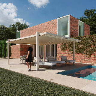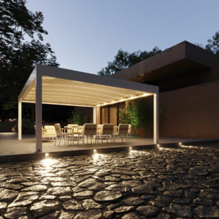 Pergo Cloud quant à elle embarque de jolies courbes grâce aux portes toiles cintrés. Cette autre pergola peut également recevoir un auvent, des fermetures latérales (Zoe, Nexus) et un éclairage Led sur portes toiles.