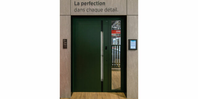 Wisniowski présentait sur Batimat un nouveau design pour sa porte Créo, une porte d'entrée en aluminium conçue avec pann...