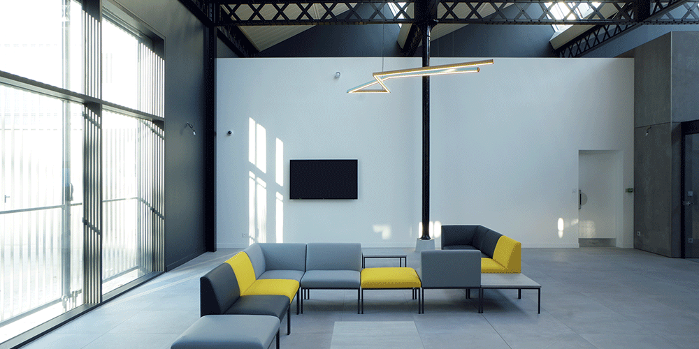 L’activité d’Euclyde, spécialisée dans le stockage de données de grands comptes, acteurs publics, ETI et PME, explique ce choix d’austérité. « Il fallait que se dégagent une impression de protection pour les clients, une image technologique et de surveillance, quelque chose d’industriel, froid et monochrome, contrairement aux projets plus classiques d’aménagement de bureaux, où un traitement chaleureux et accueillant est habituellement de rigueur », détaille Thibaut Chanut. Des couleurs et des matériaux neutres et froids accueillent le visiteur. Seul le jaune du mobilier rappelle, en forme de clin d’œil, le logo d’Euclyde.