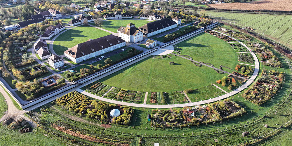Cette serre géodésique est le fruit d’une longue réflexion pendant sa gestation. Son travail méticuleux est à l’image du lieu, inscrit au Patrimoine mondial de l’UNESCO, dont les valeurs et les principes doivent être maintenus pour garantir, sur le long terme, la pérennité et l’intégrité de ce patrimoine. Le point de départ du projet ? Un besoin très concret : il manquait au maraîcher du domaine un équipement pour faire pousser ses semis, avant leur passage au potager puis à la table du restaurant de la Saline. Une parabole qui alimente le principe vertueux du circuit court et ne manque pas de faire phosphorer l’esprit passionné de l’architecte Yann Rocher, à qui le projet est confié. Si l’idée d’une serre géodésique et bioclimatique est établie, elle convoque l’imaginaire des formes hémisphériques – de la serre tropicale au globe, sphère, géode, dôme…- autant de structures que l’architecte explore depuis longtemps dans ses recherches, livres et expositions. Cette vision onirique fait de plus écho à la maquette de la Maison des gardes agricoles pour le parc de Mauperthuis, conservée sur place au musée Claude Nicolas Ledoux, architecte de la Saline Royale. La référence résonne aussi comme une allégorie de la nature, dans laquelle on vient réinvestir le végétal sans abîmer le paysage classé des jardins du « Cercle immense », aujourd’hui devenu laboratoire des métiers du paysage.